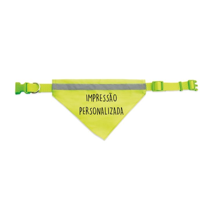 Coleira ajustável para animais de estimação na cor amarelo flúor. Incorpora bandana com detalhe reflexivo para maior visibilidade.