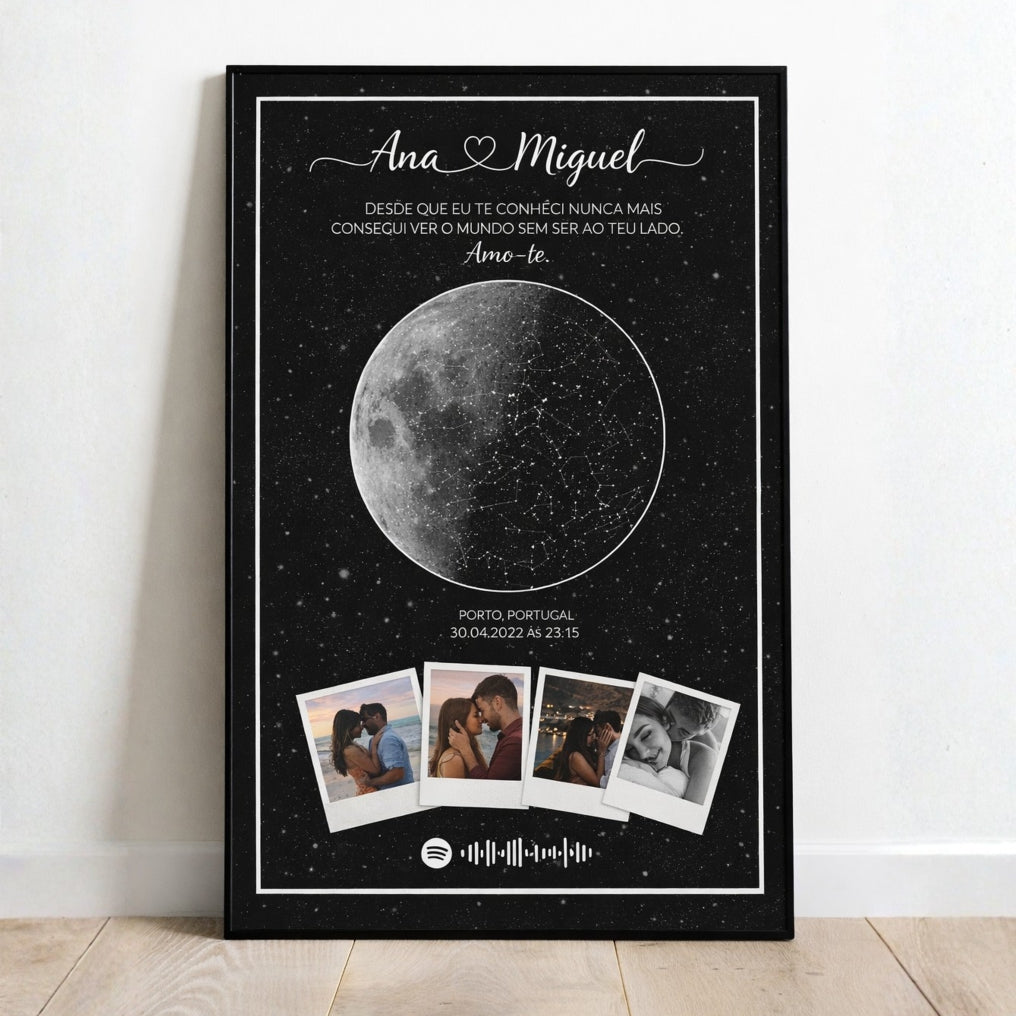 Moldura de madeira personalizada com fotografia em alta definição tamanho A3. Inclui composição gráfica.