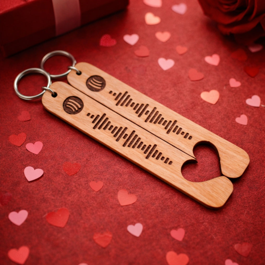 Conjunto de dois porta‑chaves personalizados estilo Spotify. Ideal para casais. Inclui composição gráfica.