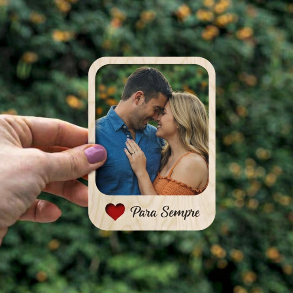 Peça decorativa em madeira com fotografia personalizada em alta definição. Pequeno presente simbólico e elegante.