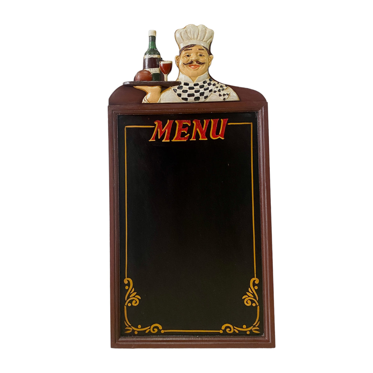 Placa vintage para restaurante com ardósia para escrever a giz ou a marcador de giz. Detalhes em 3D