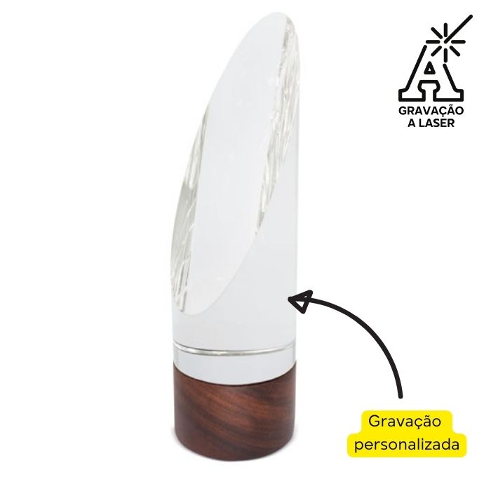 Troféu de Vidro com Gravação a laser personalizada.