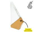 Troféu de Vidro e Madeira com Gravação a laser personalizada. 12cm x 23cm